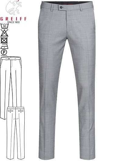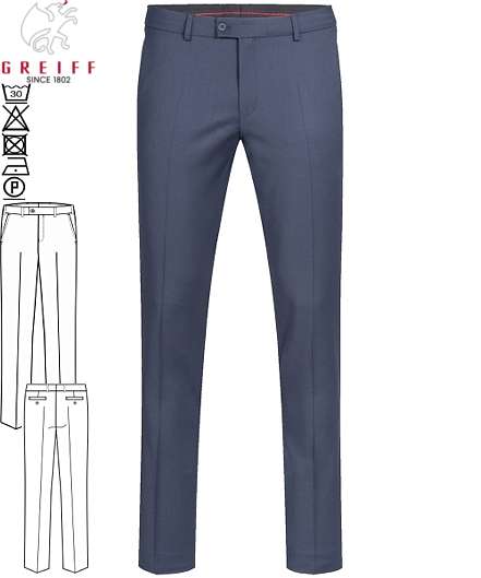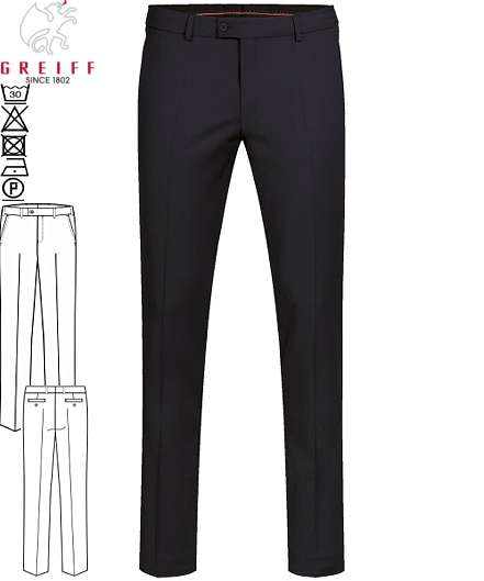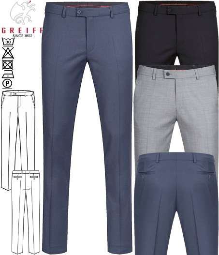 Ca. 190 g/m², 30° waschbar, niedrige Leibhöhe, Stretch, LIEFERUNG ERFOLGT OHNE GÜRTEL, elastischer Bund, 2 Seitentaschen, 2 Gesäßtaschen, Vorderhosenfutter, Fußweite bei Gr. 50 ca. 36 cm, Schrittlänge bei Gr. 50 ca. 82 cm, Greiff Anzughose in schwarz, hellgrau und dunkelblau erhältlich, BITTE WÄHLEN SIE DIE FARBE AUS, Gr. 42-54, 90-106