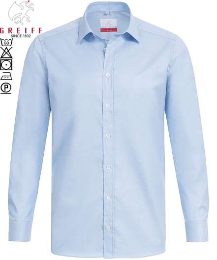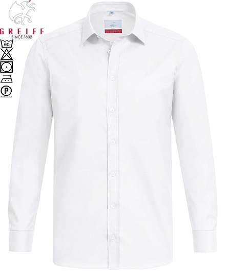 Ca. 135 g/m², 60° waschbar, Stretch, Regular fit, Kent-Kragen, weitenverstellbare Manschette mit Logo-Stickerei, Knopf am Armschlitz, Greiff Hemd in schwarz, marine, bleu und weiß erhältlich, BITTE WÄHLEN SIE DIE FARBE AUS, Gr. 35/36-47/48