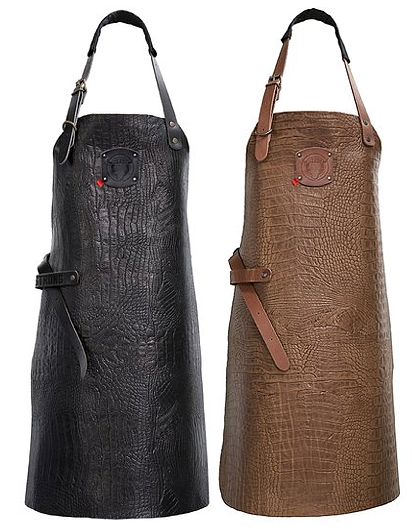 Länge x Breite ca. 82 x 60 cm, Leder Latzschürze, Nackenband vestellbar mit Gürtelschnalle, Halsschutz, (z.B. zum Tauschen abnehmbares) Label mit Logo, Hängeschlaufe für z. B. Geschirrtücher, Bindegürtel verstellbar mit Gürtelschnalle, Oberfläche geprägt mit Crocomuster, Latzschürze Leder in schwarz und cognac erhältlich, BITTE WÄHLEN SIE DIE FARBE AUS