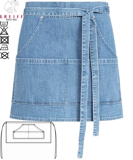 Preview: Greiff Vorbinder kurz Schürze hellblau light blue denim