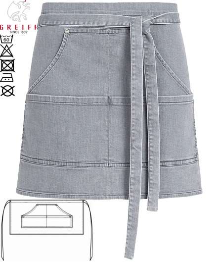 Preview: Vorbinder kurz Schürze grau light grey denim