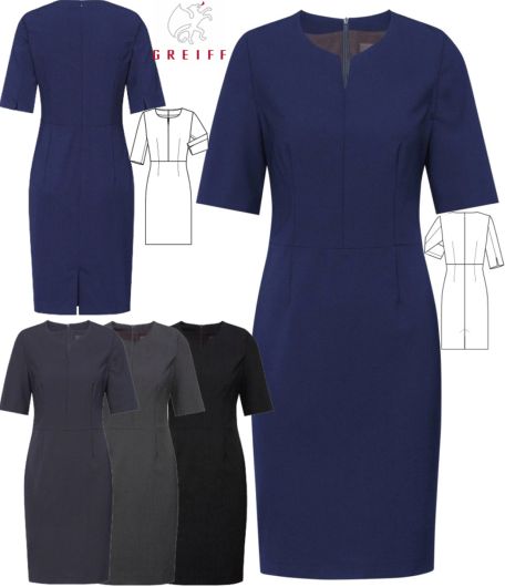 Ca. 200 g/m², 30° waschbar, Greiff Premium Kleid mit Halbarm, Regular Fit, Rundhals mit V-Ausschnitt, Taillennaht, Schlitz hinten, elastisches Futter, Rückenlänge hinten bei Gr. 38 ca. 98 cm, Bi-Stretch, in den Farben schwarz, anthrazit, marine und italien blue erhältlich, BITTE WÄHLEN SIE DIE FARBE AUS, Gr. 32-54