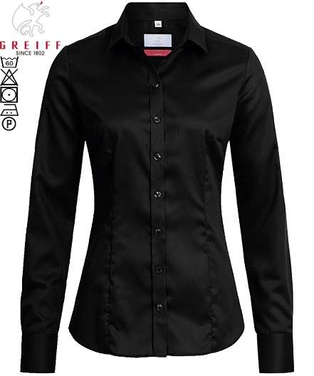 Greiff Damen Bluse schwarz Premium langarm Slim Fit