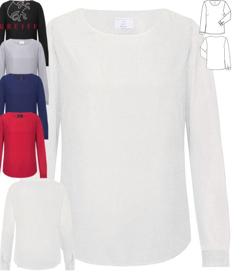 Ca. 100 g/m², 30° waschbar, Regular fit, easy care, Rundhalsausschnitt, schmale Manschette, Greiff Chiffon Bluse in schwarz, silbergrau, marine, taupe, rot, weiß und mint erhältlich, BITTE WÄHLEN SIE DIE FARBE AUS, Gr. 32-54