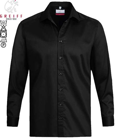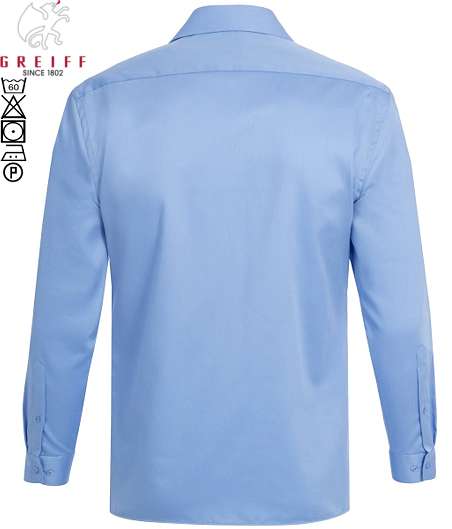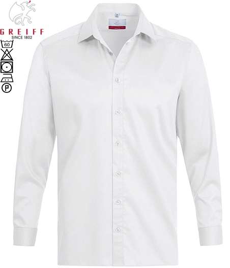 Ca. 140 g/m², 60° waschbar, Stretch, non iron - bügelfrei, Greiff Hemd weiß schwarz oder mittelblau mit New-Kent-Kragen, verstellbare Manschette mit Logo-Stickerei, Knopf am Armschlitz, bitte wählen Sie die Farbe aus, Gr. 35/36-47/48