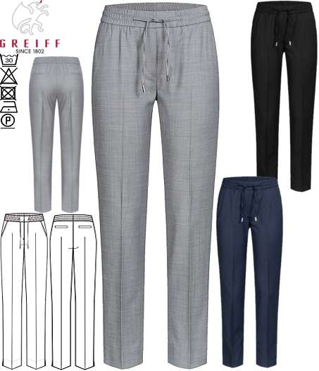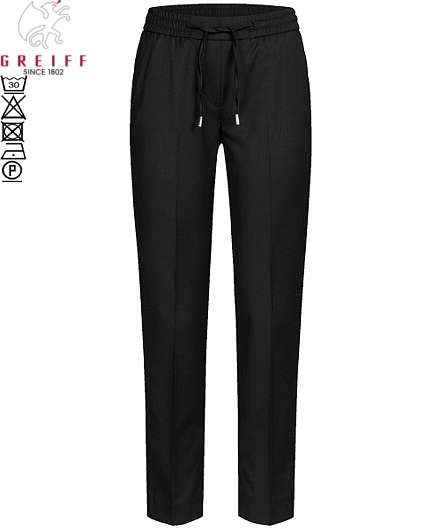 Ca. 190 g/m², 30° waschbar, Regular Fit, Greiff Damen-Joggpants schwarz, hellgrau oder dunkelblau, mittlere Leibhöhe, elastischer Bund mit Tunnelzug, 2 Seitentaschen, 2 blinde Gesäßleistentaschen, Vorderhosenfutter, Seitenschlitze am Saum, Fußweite ca. 32 cm bei Gr. 38, Schrittlänge ca. 72 cm, LIEFERUNG ERFOLGT OHNE GÜRTEL, bitte wählen Sie die Farbe aus, Gr. 32-54