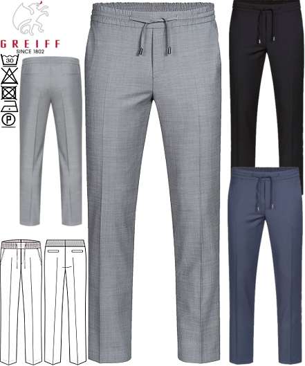 Ca. 190 g/m², 30° waschbar, Regular Fit, Greiff Hose Herren-Joggpants schwarz, hellgrau oder dunkelblau, elastischer Bund mit Tunnelzug, 2 Seitentaschen, 2 Gesäßleistentaschen, Vorderhosenfutter, Fußweite ca. 36 cm bei Gr. 50, Schrittlänge ca. 79 cm, LIEFERUNG ERFOLGT OHNE GÜRTEL, bitte wählen Sie die Farbe aus, Gr. 44-64
