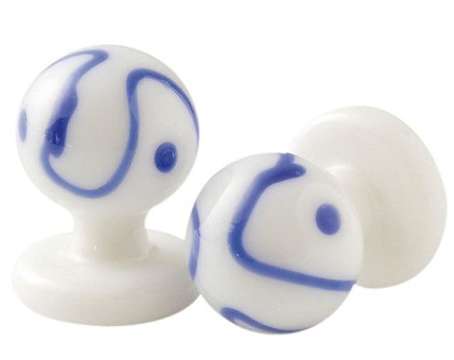 12 handgefertigte Glasknöpfe für Kochjacke weiß/blau,