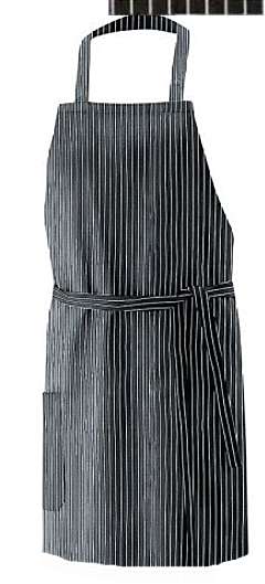 Ca. 230 g/m², 75° waschbar, kurze Latzschürze Nadelstreifen schwarz mit Seitentasche und genähten Stoffbänder, verstellbares Halsband mit Druckknöpfen, Breite x Länge ca. 75x75 cm, Taschengröße BxH ca. 20x18 cm, Öko-Tex Standard 100, Bügelleichte- und Softausstattung