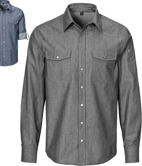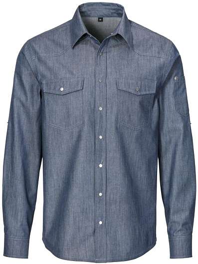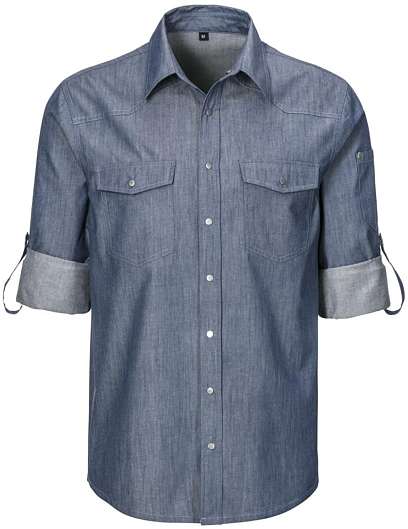 Ca. 140 g/m², 40° waschbar, Herren-Jeanshemd mit Pull-up-Sleeves. Kentkragen und Drückknöpfen. 2 aufgesetzte Brusttaschen mit Klappe und Druckknopfverschluss, Armtasche, Jeanshemden in schwarz und royal blue erhältlich, bitte wählen Sie die Farbe aus, Gr. S-5XL
