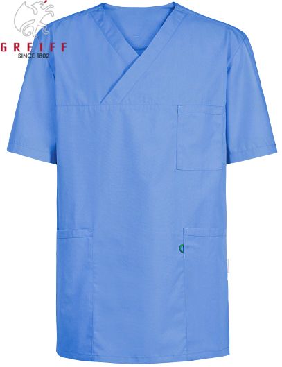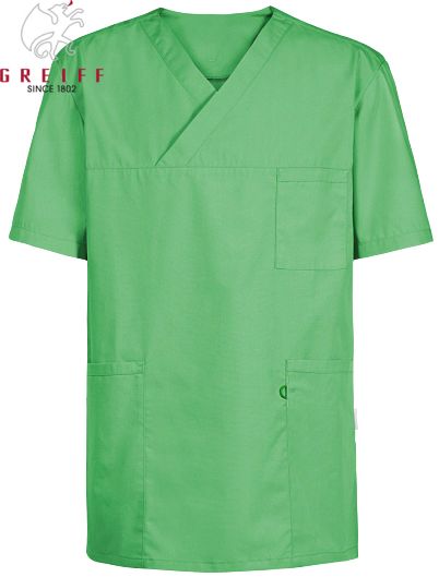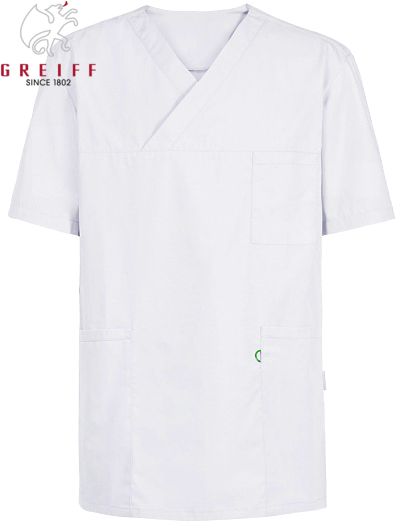 Ca. 175 g/m², 95° waschbar, V-Ausschnitt, kurzarm, 1 Brusttasche, 2 aufgesetzte Seitentaschen, Seitenschlitze, Keyloop, Rückenlänge bei Gr. M ca. 75 cm, Schlupfkasack in weiß, lichtgrau, mittelblau, lindgrün oder mattrosa erhältlich, BITTE WÄHLEN SIE DIE FARBE AUS, Gr. 2XS-5XL