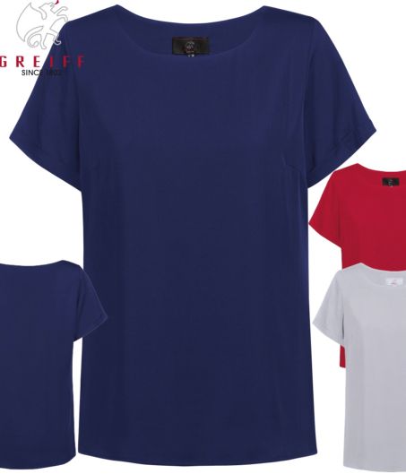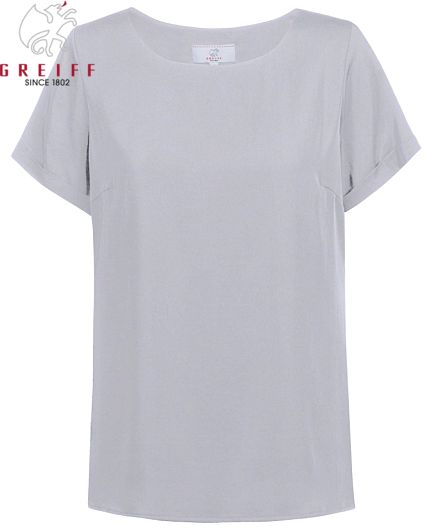 Ca. 100 g/m², 30° waschbar, Regular fit, easy care, Rundhalsausschnitt, Ärmel mit Aufschlag, Greiff Chiffon Bluse kurzarm in silbergrau, marine, taupe, rot oder mint erhältlich, BITTE WÄHLEN SIE DIE FARBE AUS, Gr. 32-54