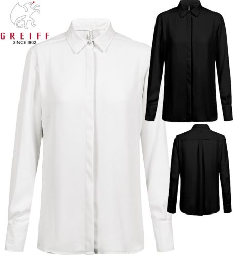 Ca. 100 g/m², 30° waschbar, Regular fit, easy care, Greiff Chiffon Bluse langarm, breite Manschette, verdeckte Knopfleiste, Bluse in schwarz oder weiß erhältlich, BITTE WÄHLEN SIE DIE FARBE AUS, Gr. 32-54