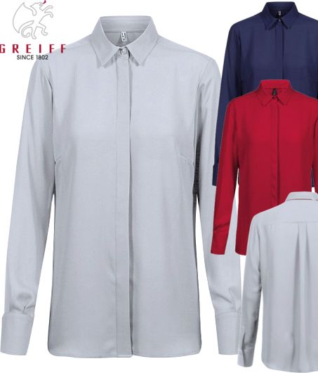 Ca. 100 g/m², 30° waschbar, Regular fit, easy care, Greiff Chiffon Bluse langarm, breite Manschette, verdeckte Knopfleiste, Bluse in silbergrau, marine, taupe, rot oder mint erhältlich, BITTE WÄHLEN SIE DIE FARBE AUS, Gr. 32-54