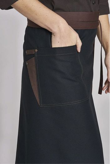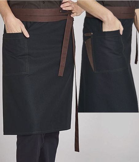 Ca. 300 g/m², 60° waschbar, Breite x Länge ca. 90 x 60 cm, Leiber Vorbinder mit 1 großen Taschen, 1 Stifttasche in Kontrastfarbe, mit Ziernieten, Bindebänder in Kontrastfarbe