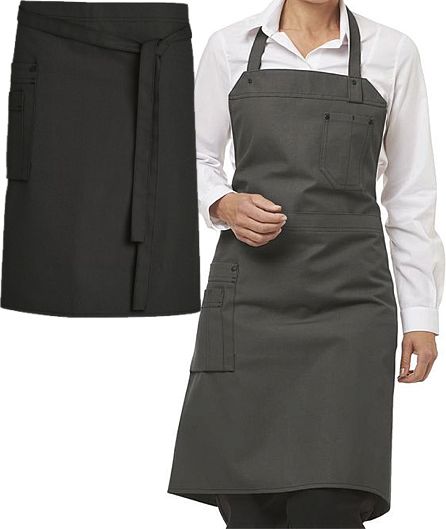 Ca. 300 g/m², 60° waschbar, Länge x Breite ca. 85 x 95 cm, Latzschürze modische Latzschürze im Jeans-Style auch als Vorbinder einsetzbar, mit diversen Taschen und Nieten, Leiber Latzschürze in hellgrau und schwarz, BITTE WÄHLEN SIE DIE FARBE AUS