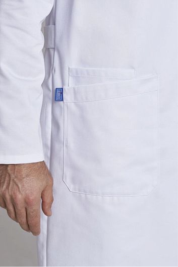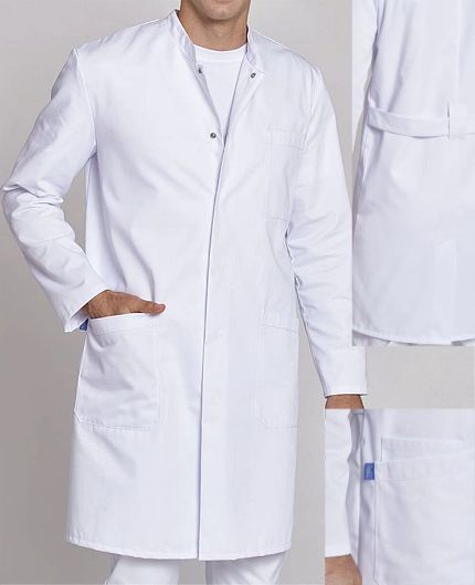Ca. 215 g/m², 95° waschbar, Clean Dress, Industriewäsche geeignet, sehr weiches Cooltex-Gewebe, Leiber Arztkittel Herren mit Stehkragen, verdeckte Druckknopfleiste, 2 Seitentaschen, 1 Piepertasche, 1 Brusttasche, Rückengurt und Gehschlitz, Rückenlänge bei Gr. 50 ca. 100 cm, Gr. 44-56
