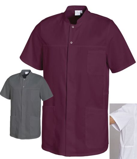 Ca. 150 g/m², 75° waschbar, Clean Dress, ISO 15797 / PRO-Label 8 Industriewäsche geeignet, Materialmix aus Pique-Ware und leichter Webware, atmungsaktives Stretchgewebe aus Pique-Gewebe aus Lyocellfassern in Seitenpasse, Leiber Herren Kasack mit verdeckten Druckknöpfen, 2 Seitentaschen, 1 Brusttasche, Seitenschlitze, Rückenlänge bei Gr. S ca. 76 cm, in anthrazit oder beere, bitte wählen Sie die Farbe aus, Gr. S-4XL