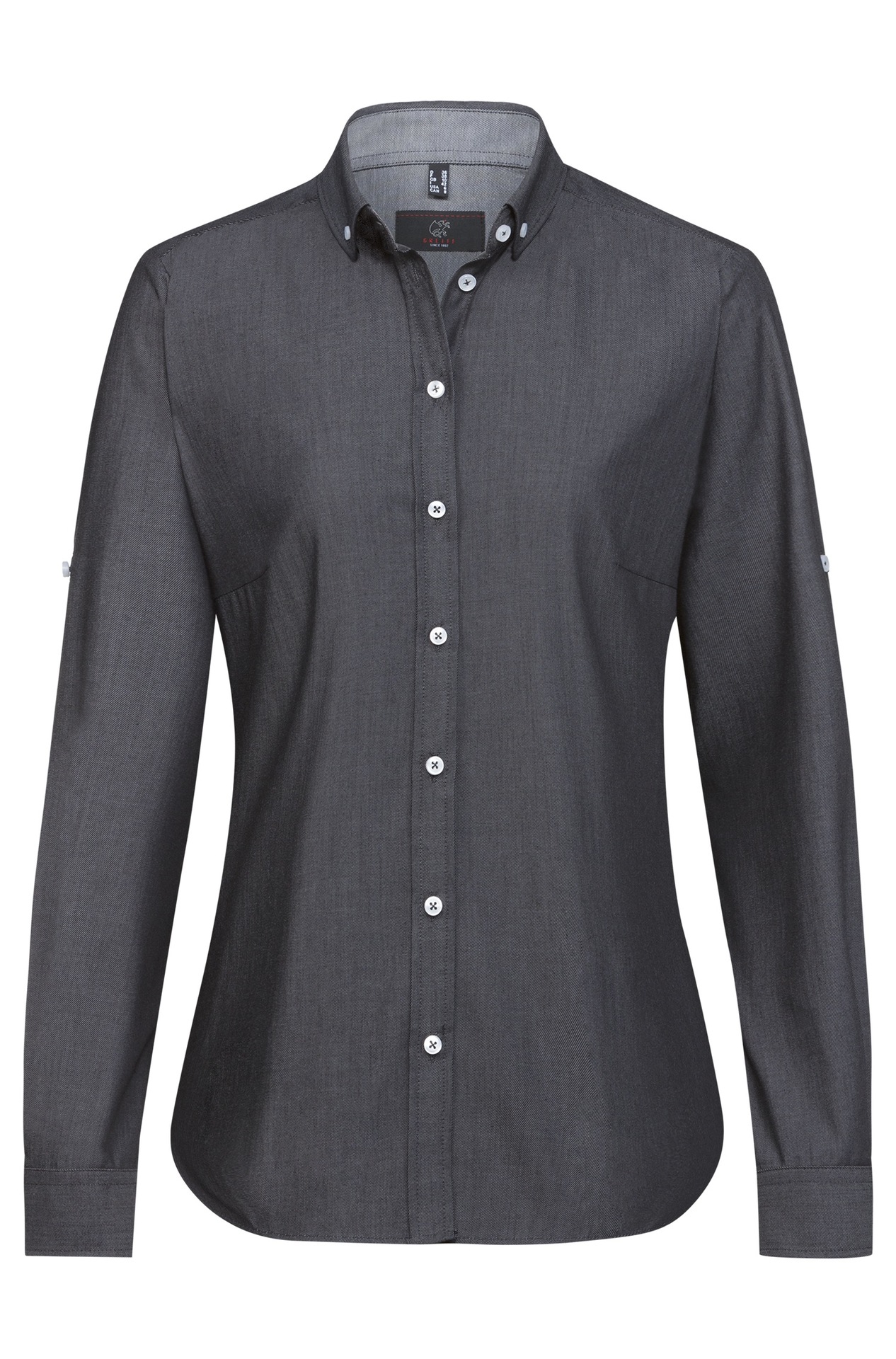 Ca. 131 g/m², 60° waschbar, Regular fit, Stretch, Greiff Bluse denimoptik mit Button-Down-Kragen, Krempelarm, Quetschfalte im Rücken, seitlicher Kontrasteinsatz, Greiff Bluse in denimoptik anthrazit, denimoptik hellblau und denimoptik marine erhältlich, BITTE WÄHLEN SIE DIE FARBE AUS, Gr. 32-54