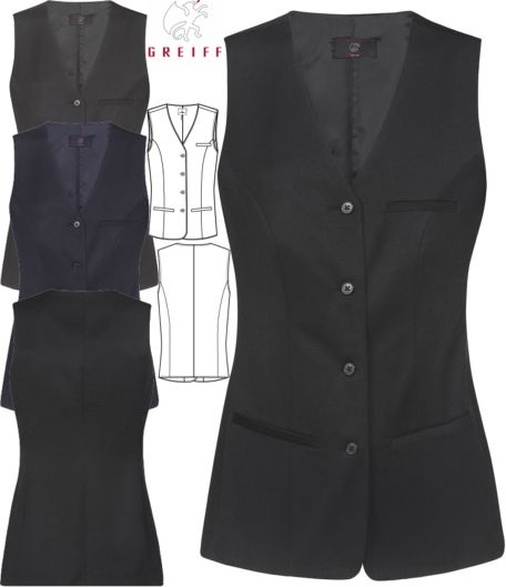 Ca. 235 g/m², 30° waschbar, Stretch, wasser- und schmutzabweisend, Stoffrücken, 2 Leistentaschen, 1 Brustleistentasche, 1 Innentasche, Regular Fit, Rückenlänge bei Gr. 38 ca. 66 cm, Greiff Damen Weste in schwarz, anthrazit und marine erhältlich, bitte wählen Sie die Farbe aus, Gr. 32-54