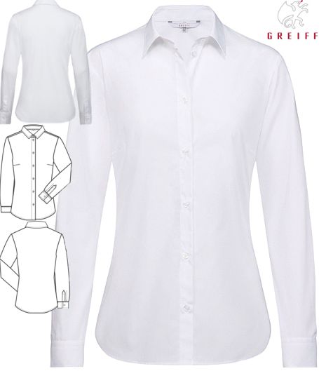 Ca. 110 g/m², 60° waschbar, easy-care, pflegeleicht, Stretch, Regulat fit, Greiff Bluse weiß mit Kent-Kragen, Gr. 32-60