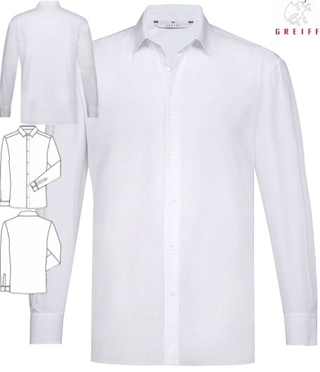 Ca. 110 g/m², 60° waschbar, easy-care, pflegeleicht, Stretch, Regulat fit, Greiff Hemd weiß mit Kent-Kragen, Gr. 35/36-51/52