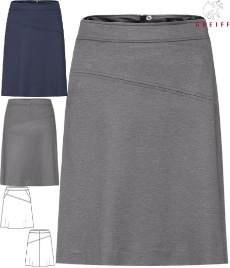 Ca. 270 g/m², 30° waschbar, Regular Fit, Stretch, Damen-Jerseyrock von Greiff in A-Linienform mit asymetrischer Teilungsnaht, Länge ca. 56 cm bei Gr. 38, 2 Seitentaschen, elastisches Futter, ausgestellte Form, LIEFERUNG ERFOLGT OHNE GÜRTEL, Greiff Rock in anthraziz meliert, hellgrau meliert und blau meliert erhältlich, BITTE WÄHLEN SIE DIE FARBE AUS, Gr. 32-54
