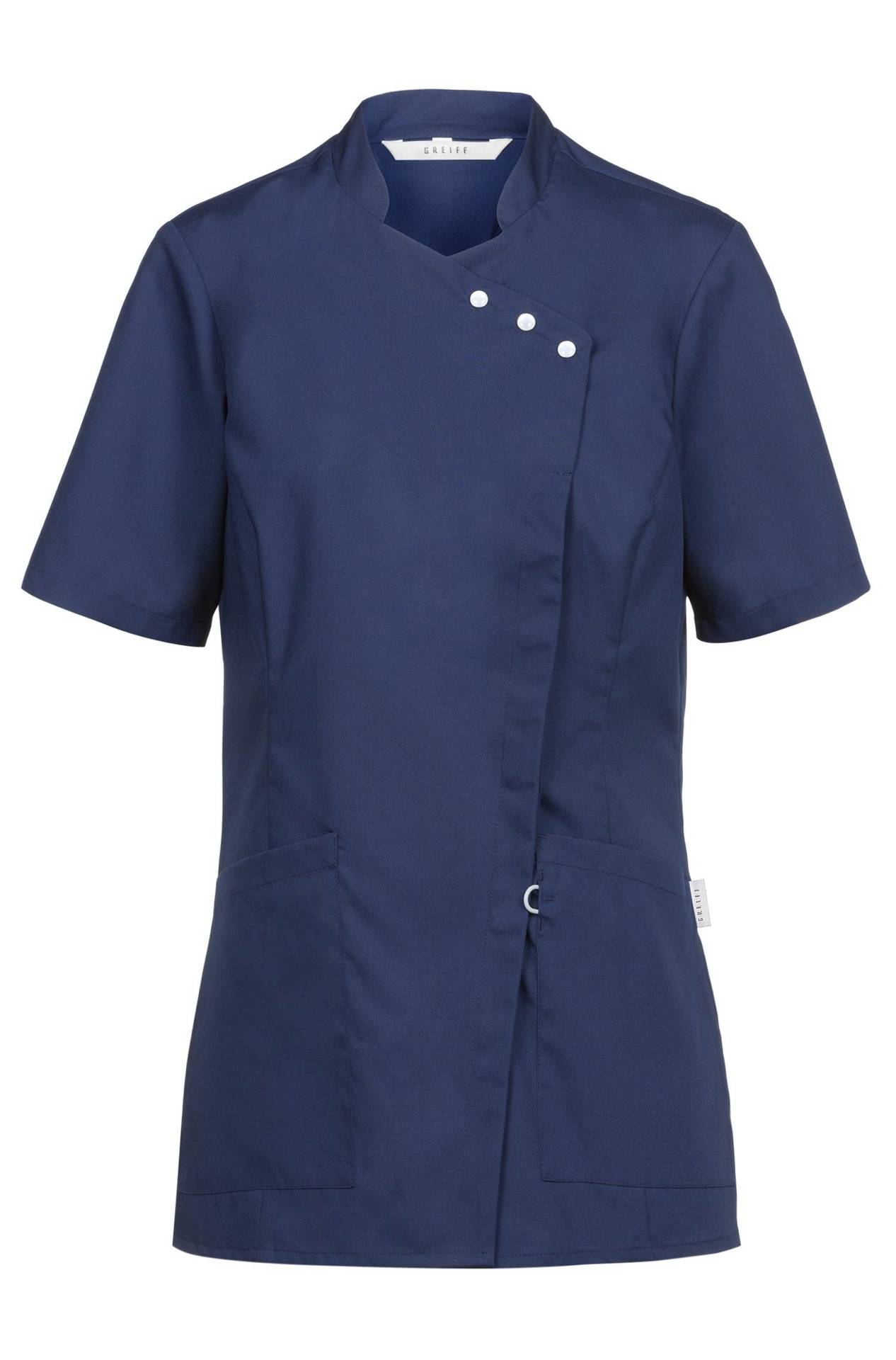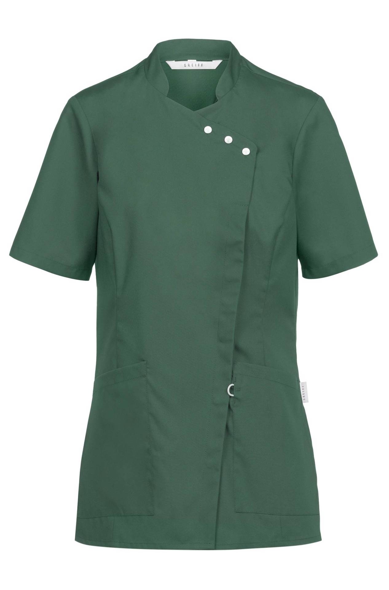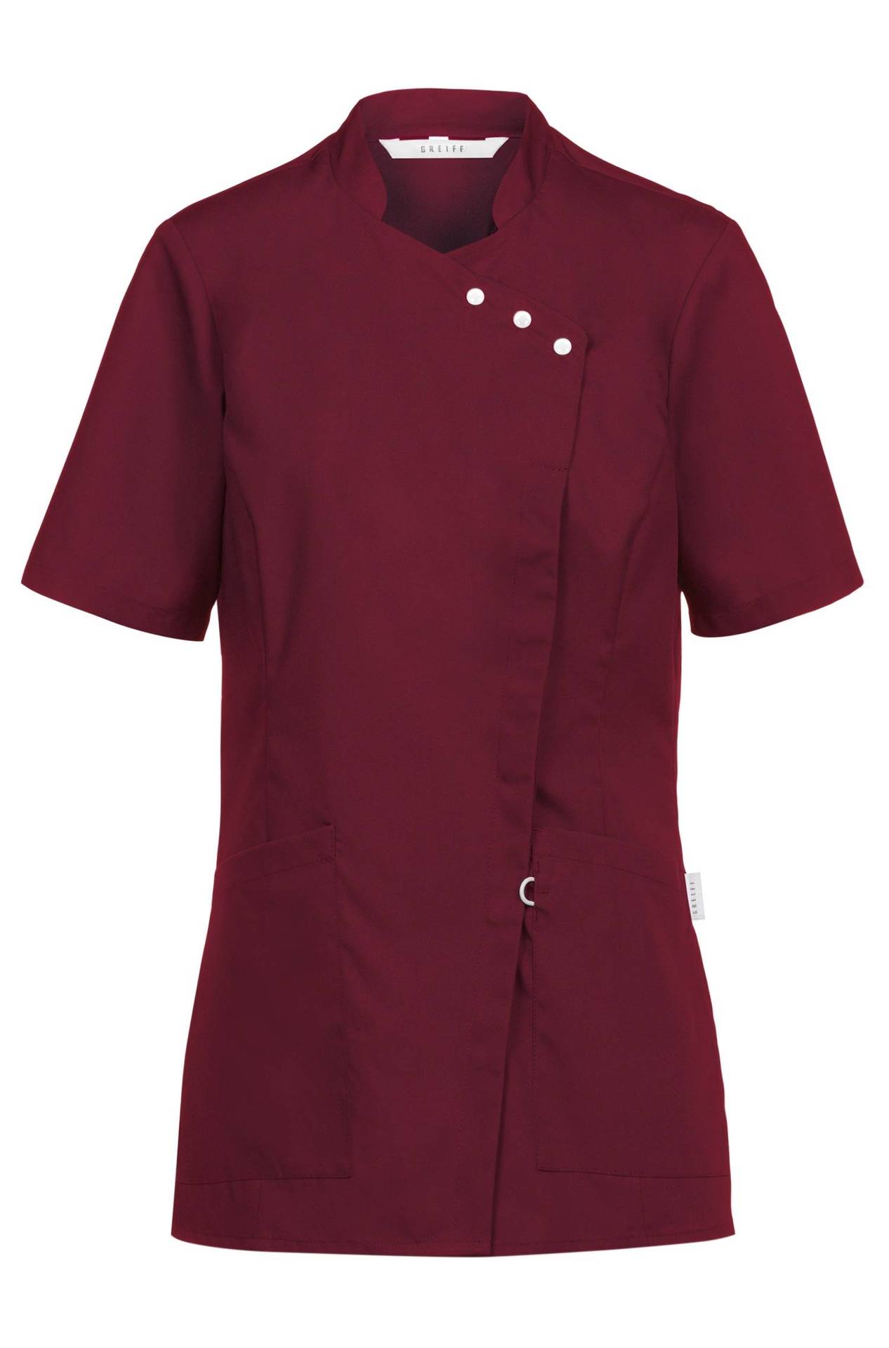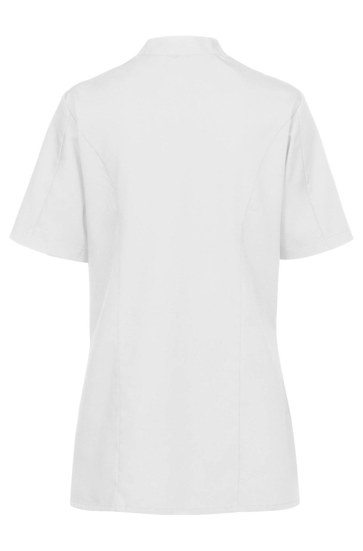 Ca. 195 g/m², 60° waschbar, Regular Fit, kurzarm Damen Kasack mit Stehkragen, 2 aufgesetzte Seitentaschen, verdeckte asymetrische Druckknopfleiste mit drei sichtbaren Perlmut-Druckknöpfen, Keyloop in linker Tasche integriert, Wiener Nähte in Vorder- und Rückenteil, Rückenlänge bei Gr. 38 ca. 70 cm, Schlupfkasack in weiß, schwarz, dunkelblau, dunkelgrün oder bordeaux erhältlich, BITTE WÄHLEN SIE DIE FARBE AUS, Gr. XS-4XL