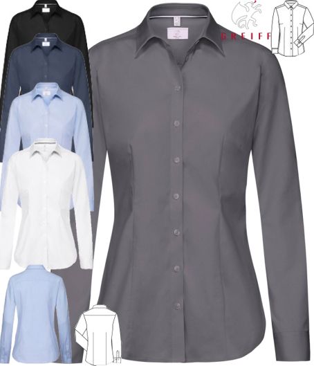 Ca. 120 g/m², 40° waschbar, Regular Fit, Stretch, Greiff Bluse mit New-Kent-Kragen in schwarz, bleu oder weiß, easy-care, bitte wählen Sie die Farbe aus, Gr. 32-54