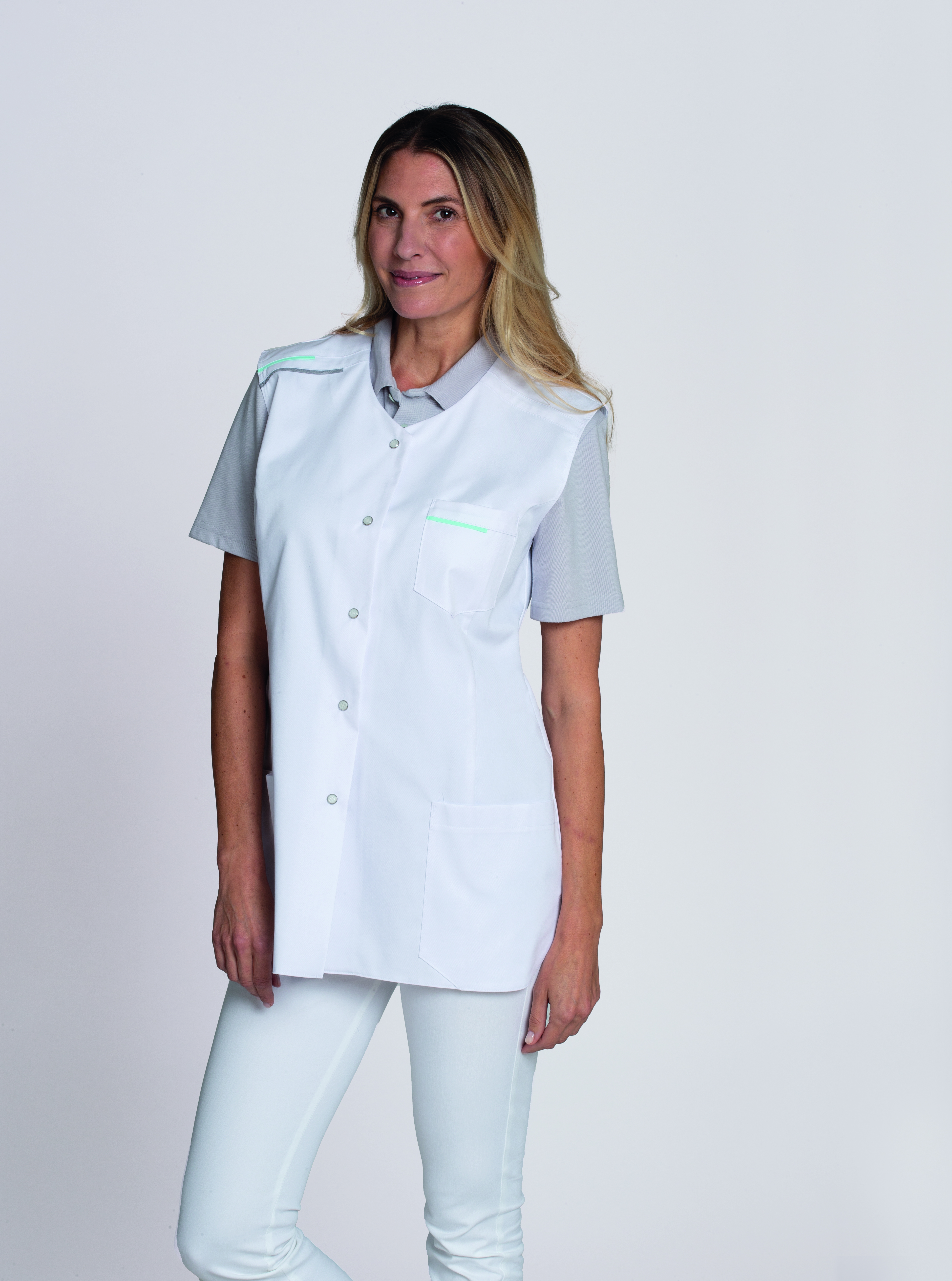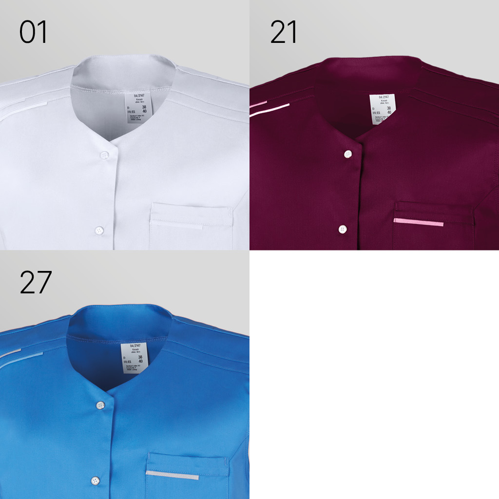 Ca. 190 g/m², 60° waschbar, ISO 15797 / PRO-Label Industriewäsche geeignet, ärmelloser Kasack Leiber bordeaux oder caribic-blau mit Druckknopfleiste, 2 aufgesetzte und abgeschrägte Seitentaschen und 1 Brusttasche, farbige Paspelierung an Schulter und Brusttasche - praktische Seitenschlitze - abgerundeter Saum Industriewäsche geeignet, Gr. 38 = Rückenlänge ca. 75 cm, bitte wählen Sie die Farbe aus, Damen-Gr. 36-52