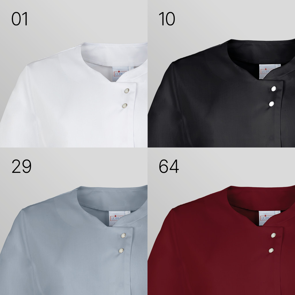 Ca. 150 g/m², 60° waschbar, Industriewäsche geeignet, Leiber Kittel Damen in den Farbe silbergrau, beere, türkis und schwarz erhältlich, Druckknopfverschluss mit schmuckvollen Knöpfen, 2 praktische Leistentaschen, feminine Schnittführung, Rückenlänge ca. 66 cm, bitte wählen Sie die Farbe aus, Gr. 34-52