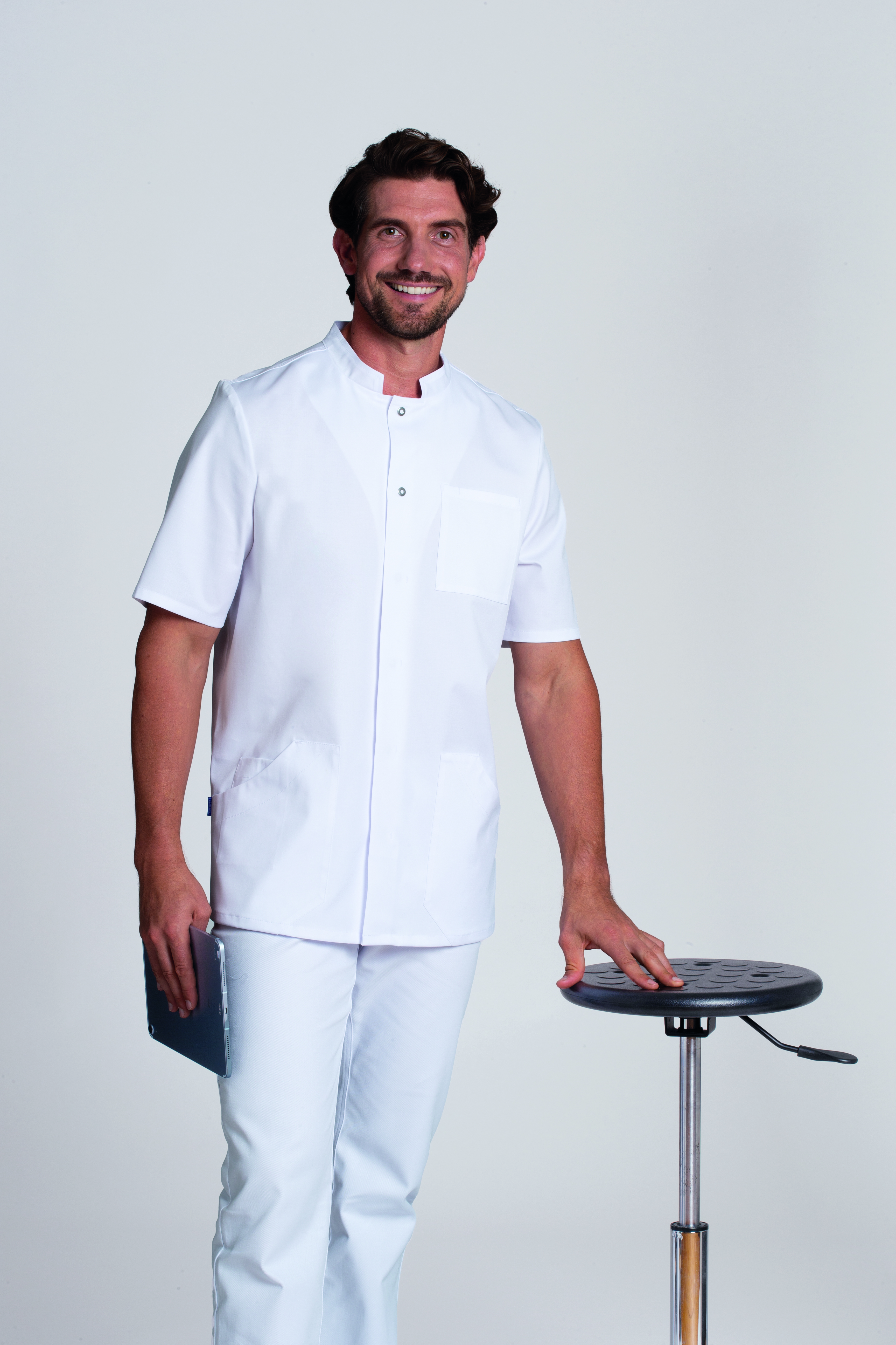 Ca. 180 g/m², 95° waschbar, Clean Dress, ISO 15797 / PRO-Label 2 Industriewäsche geeignet, Leiber Kasack Herren kurzarm mit Druckknopfleiste, Stehkragen, 2 aufgesetzte, abgeschrägte Seitentaschen mit 1 zusätzlichen Tasche, 1 Brusttasche, Seitenschlitze, Rückenlänge bei Gr. M ca. 78 cm, Gr. XS-4XL