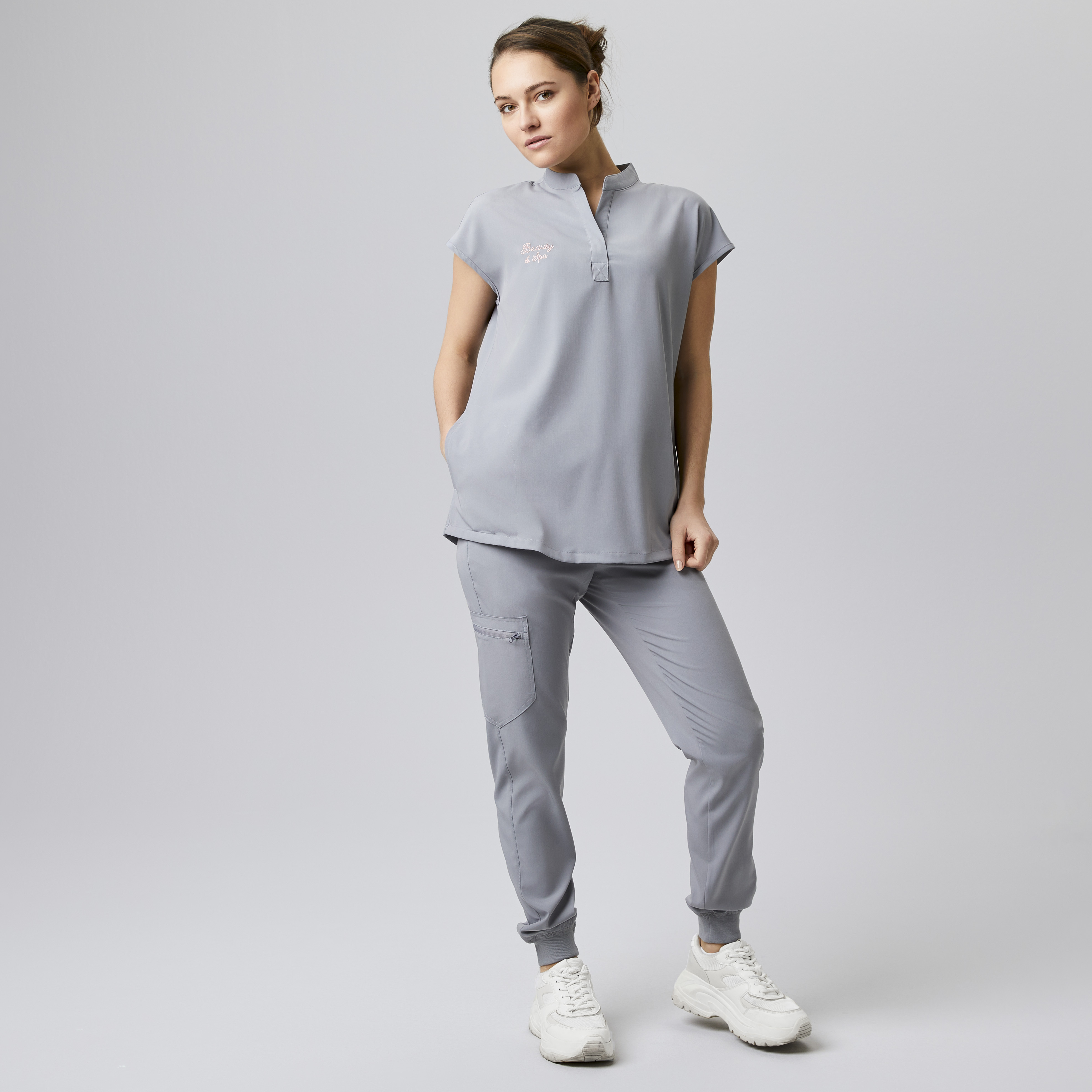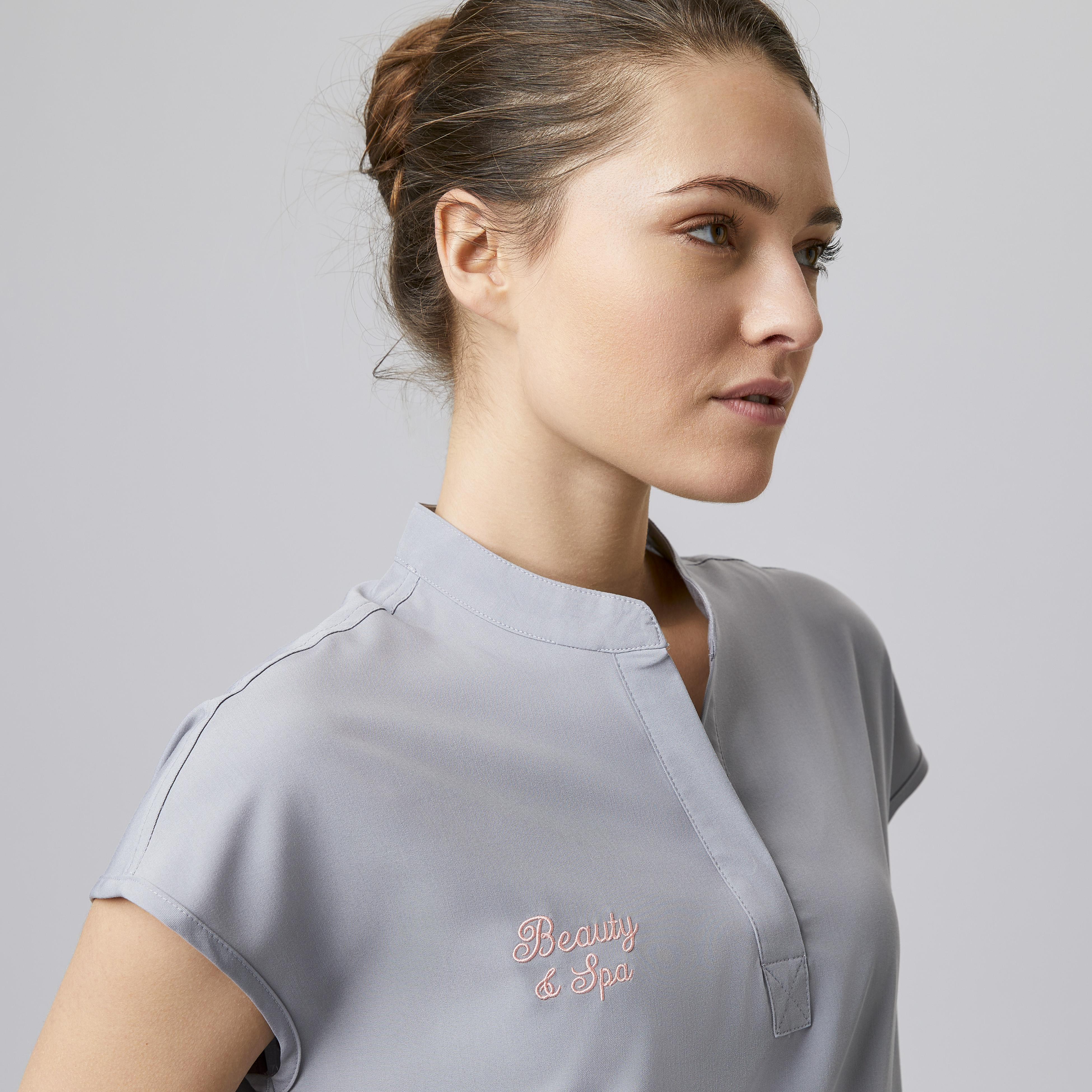 JEDOCH OHNE STICKEREI Blusenkasack Stahkragen kurzarm farbig