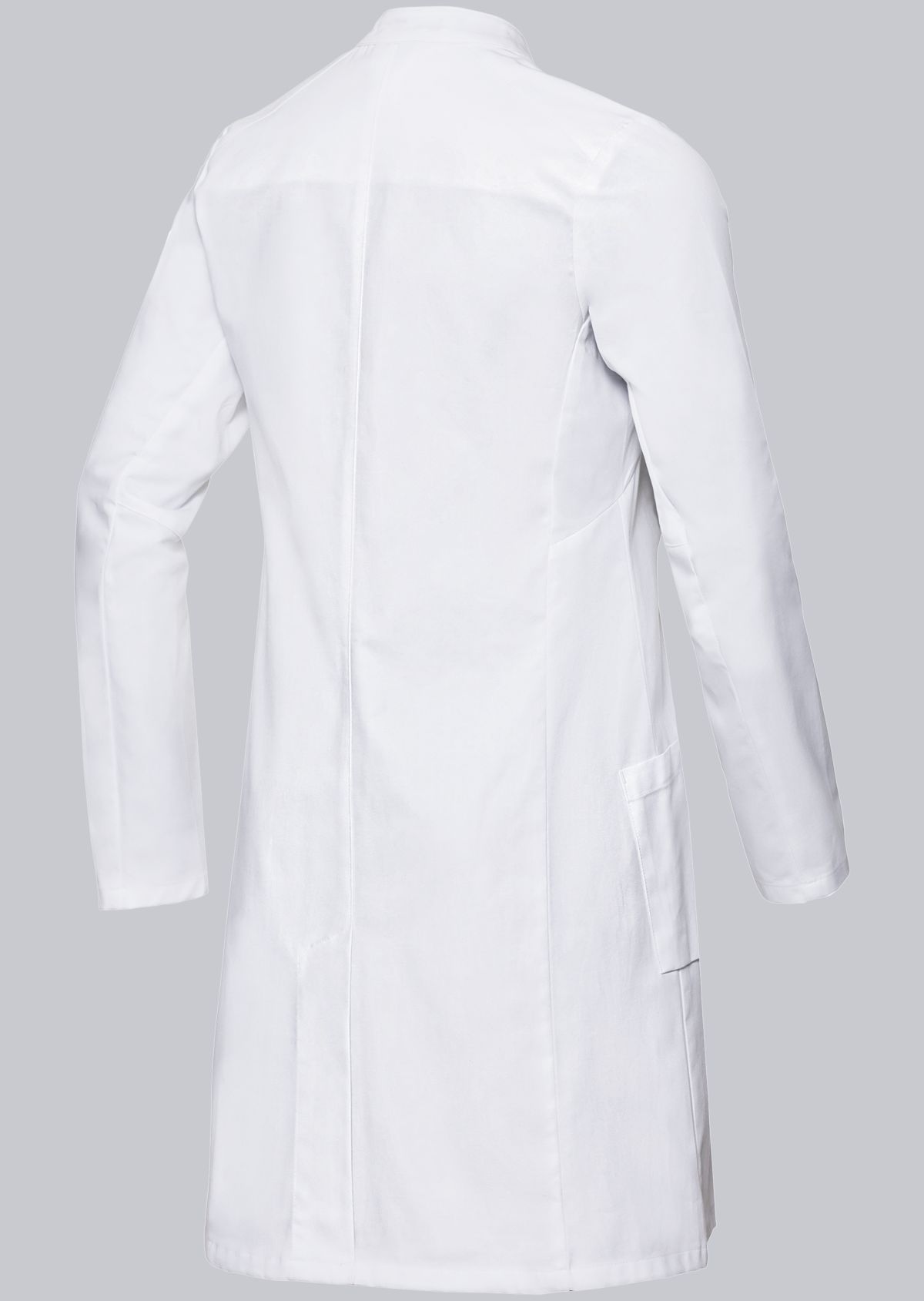 Ca. 205 g/m², 95° waschbar, BP Arztmantel Damen Langarm, Armliftsystem für mehr Bewegungsfreiheit, 1 Brusttasche, Stehkragen mit silbernem Innenkragen zum Schutz vor Verfärbung, 2 geräumige Seitentaschen, verdeckte Druckknopfleiste, Rückenschlitz, schmale Passform, Gr. 32n-56n