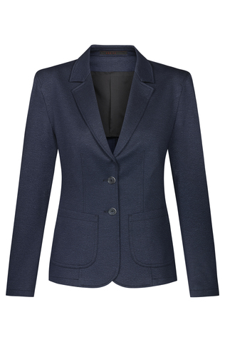 In der Farbe meliert anthrazit und meliert blau (Gewebe 2125): Oberstoff: 53% Polyester, 43% Viskose, 4% Elasthan; Futter: 100% Polyester.