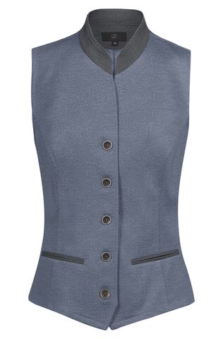 Ca. 270 g/m², 30° waschbar, Regular Fit, Stretch, Greiff Damen Jerseyweste Landhaus mit Stehkragen, 2 Paspeltaschen, kurze Seitenschlitze, halbgefüttert, Rückenlänge bei Gr. 38 ca. 55 cm, Greiff Damenweste Landhaus in grau oder blau mit Kontrast grau, bitte wählen SIe die Farbe aus, Gr. 32-54