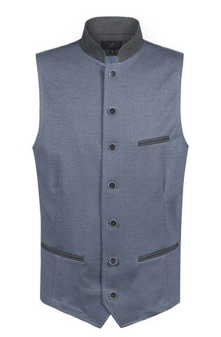 Ca. 270 g/m², 30° waschbar, Regular Fit, Stretch, Greiff Weste mit Stehkragen, 7-Knopf, 2 Pattentaschen, 1 Brustpaspeltasche, 2 Innentaschen, Seitenschlitze, halbgefüttert, Rückenlänge bei Gr. 50 ca. 59 cm, Greiff Landhaus Weste Herren in grau oder blau mit Kontrast grau, bitte wählen SIe die Farbe aus, Gr. 44-64, 90-114