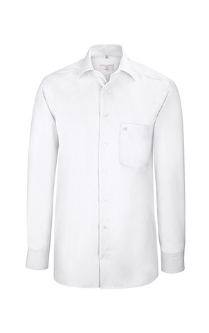 Ca. 125 g/m², 60° waschbar, Tunnelfinisher geeignet, Non Iron, Comfort Fit, Greiff Hemd weiß mit New-Kent-Kragen, 1 Brusttasche, weitenverstellbare Manschette, Knopf am Armschlitz, 2 Rückenfalten, Gr. 39/40-51/52