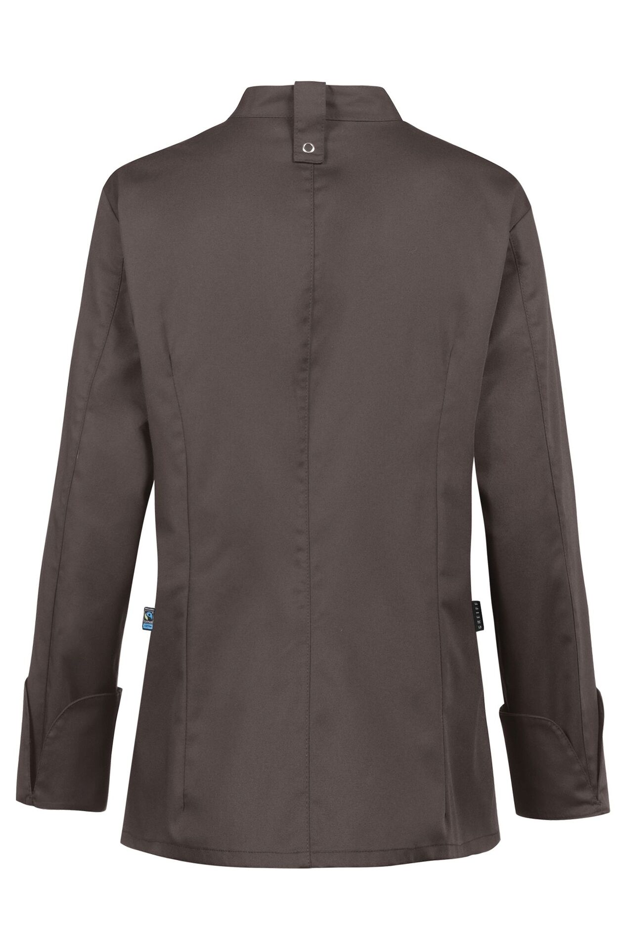 Ca. 200 g/m², 95° waschbar, Greiff Kochjacke Damen taupe mit verdeckten Druckknöpfen, Armtasche mit Logos, Lüftungslöcher, Wiener Nähte im Vorderteil und Rückenteil, Schürzenschlaufen am Kragen, Lüftungslöcher, Regular Fit, Gr. XS-4XL