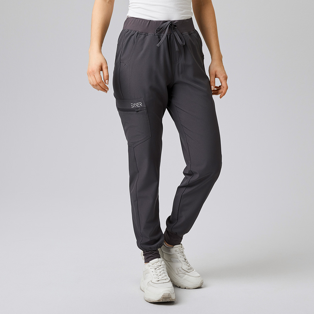 Preview: Damen-Schlupfhose graphit slimfit Stretch Arbeitshose mit Gummizug